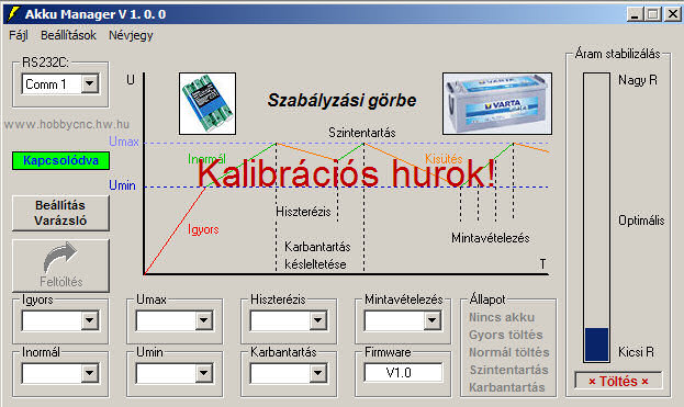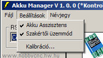 Ha ilyenkor kilépünk a kalibrációs felületből (Mégse gomb), az Akku Manager